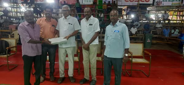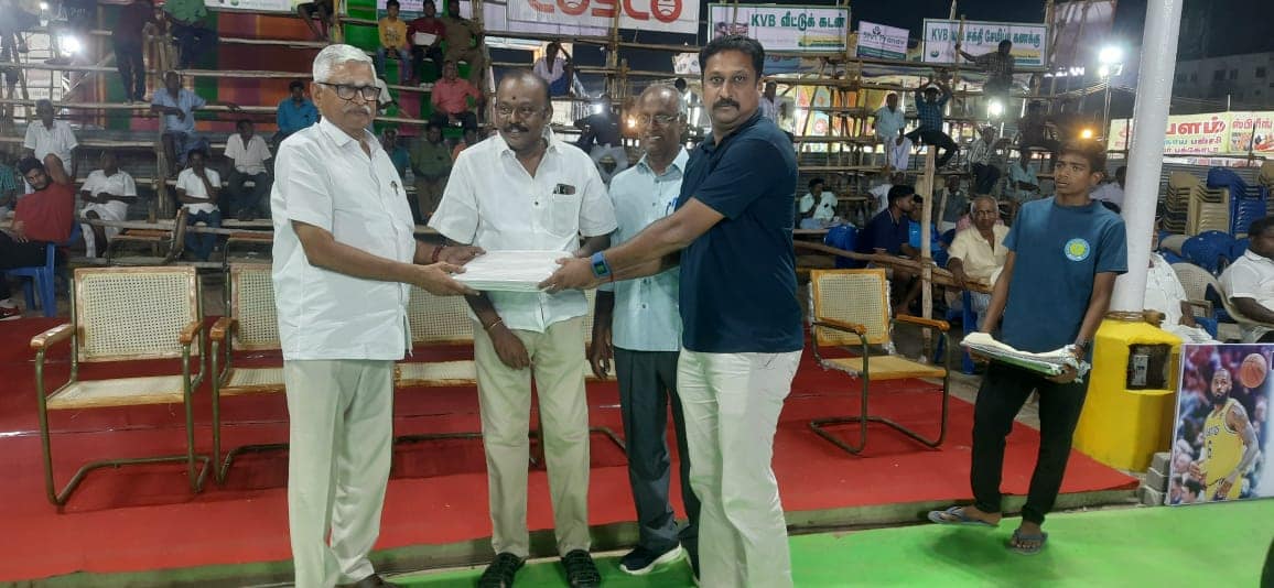 கரூர் கூடைப்பந்து குழுவின் சார்பாக 65-ம் ஆண்டு ஆண்களுக்கான LRG நாயுடு நிணைவு சுழற்கோப்பை மற்றும் 11-ம் ஆண்டு K.V.B சுழற்கோப்பைக்கான பெண்களுக்கான அகில இந்திய கூடைப்பந்து போட்டியில் பணிபுரியும் பணியாளர்கள் 100 நபர்களுக்கு சீருடைகள் வழங்கும் விழா 18.05.2025 அன்று கரூர் கூடைபந்து குழுவின் தலைவர் திரு C.பாஸ்கர் அவர்கள் தலைமையில் V.N.C மஹாலில் சிறப்பாக நடைபெற்று முடிந்தது